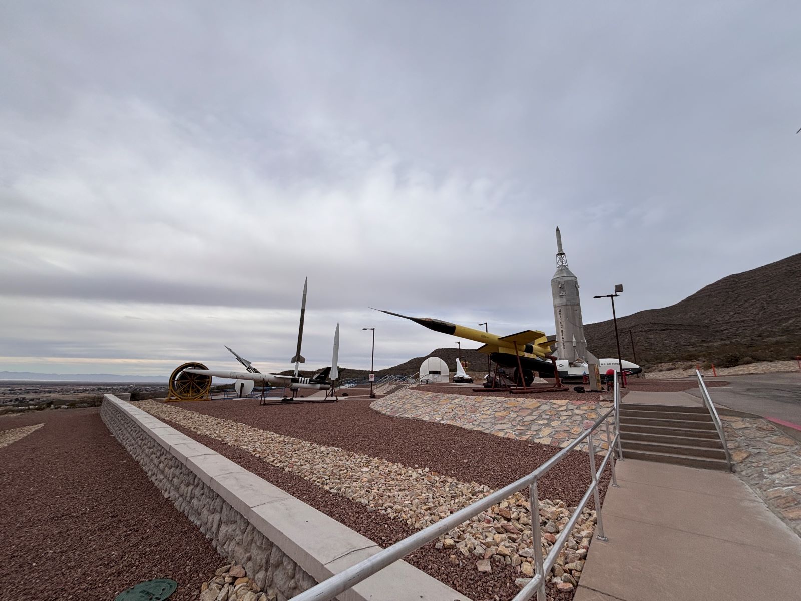 Heading out from White Sands, we had time to spare before the tyre appointment in Alamogordo. So, we decided to do a quick stop at the Space museum for an hour. It was interesting but definitely a needed a bit of updating. The museum, and the town really, seemed like the kind of place that had seen its heyday and was living off past glories of the early US rocket programs and Trinity test just to the north. I don’t mean to sound rude, it just felt a bit dated and run down. Maybe the weather and time of year played a part?