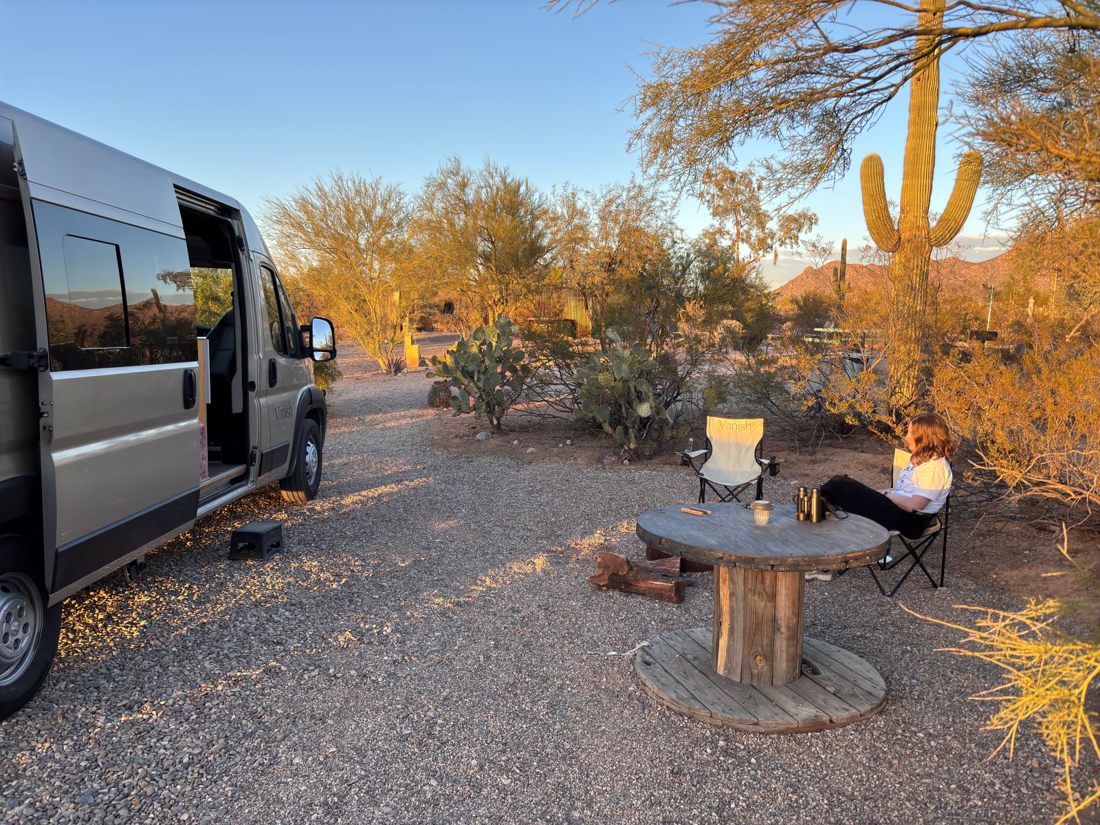 Eventually we made it to camp Saguaro, a hip camp discovery Ellen made only two days before when we changed our plans. And what a find it was! On the edge of the west saguaro national park, this is a great spot for vanlifers who don’t need electric hookup etc. Cacti, trees, fire pits, hot showers and 20°C. Perfect.