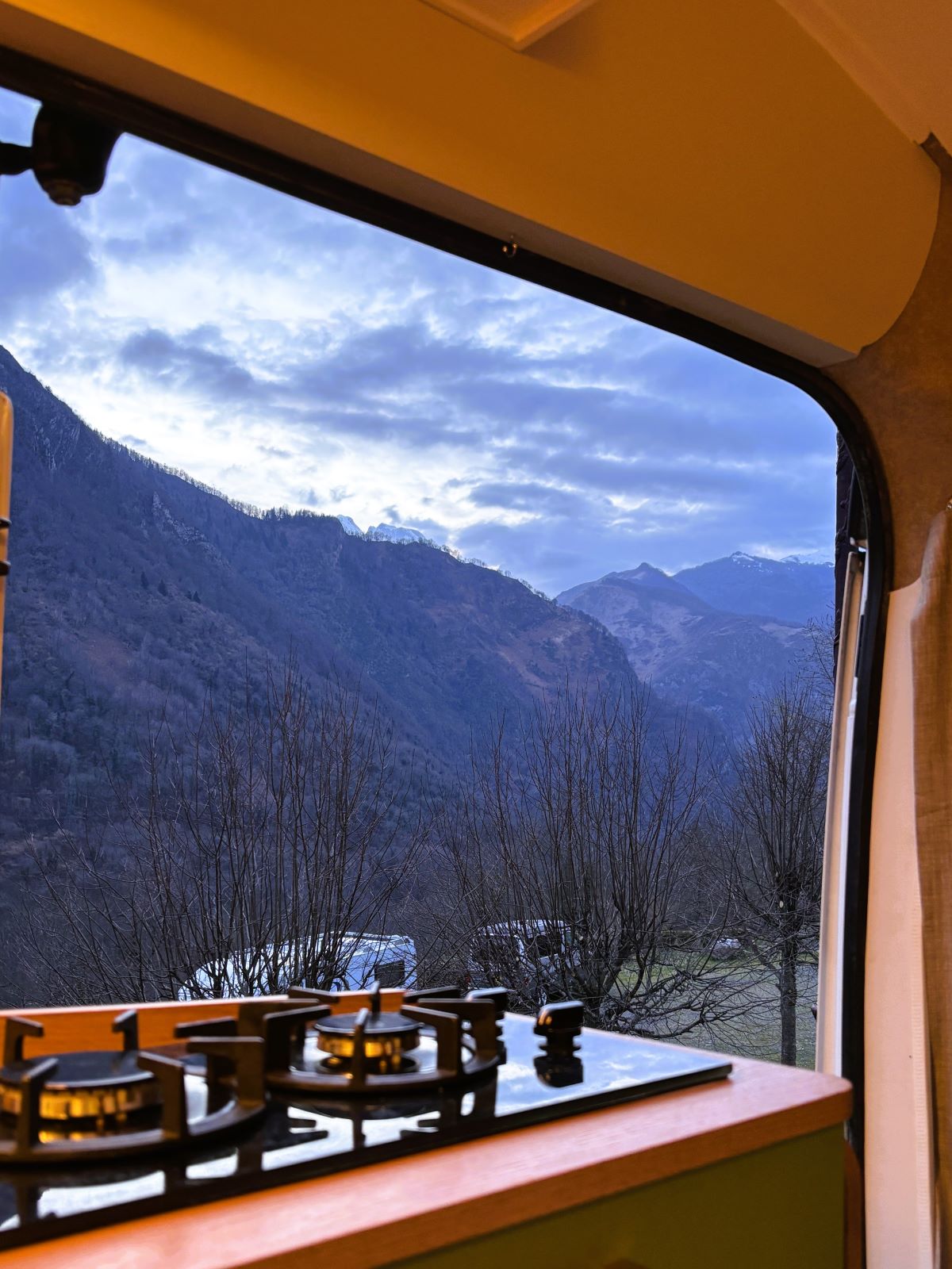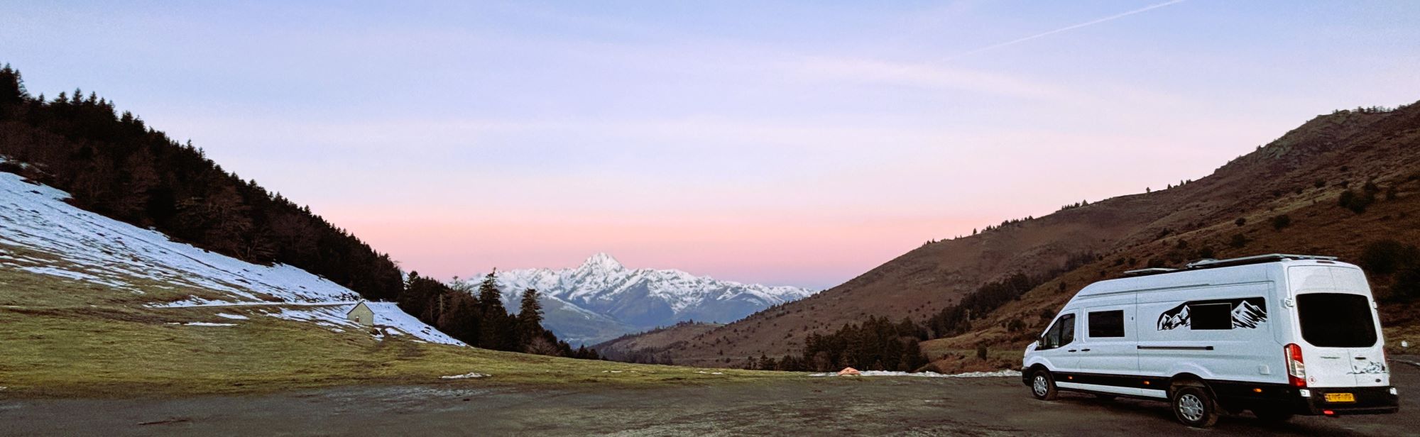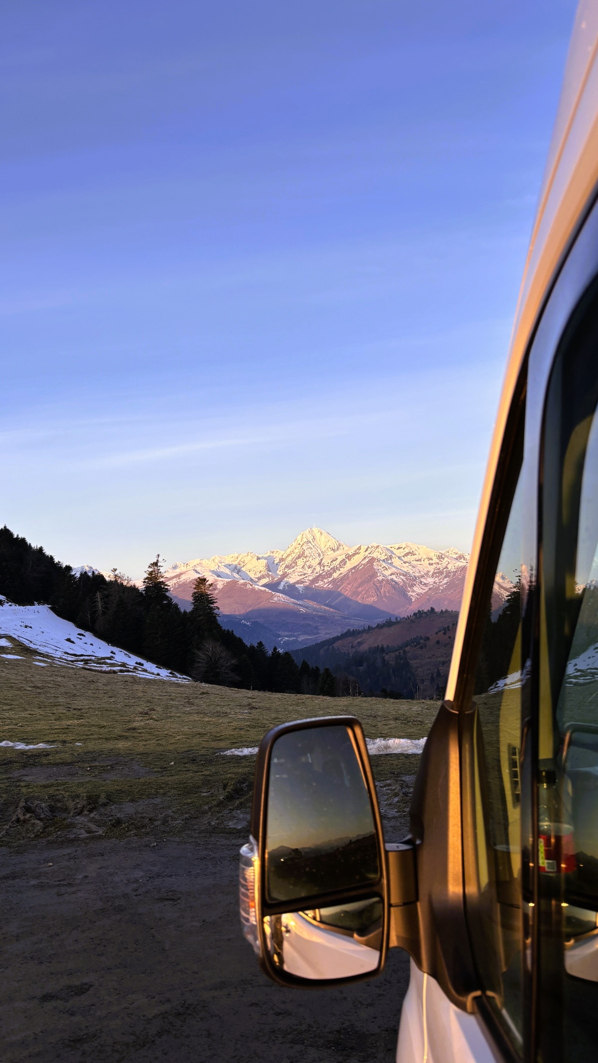 We headed back down the mountains to Noodle ready to do some van chores on the drive and then head east again. Though we didn't really know where at this point. Eventually we found ourselves driving up another mountain pass to the Col D'Aspin. We had put somewhere another hour away into google maps but when we got the top of the col, we realised that this was the most spectacular place to spend the night. A wide open space in the clouds (though there weren't many about) with almost 360 degree views across the Snow covered Pyrenees and the Pic du Midi slap bang in the middle of our windscreen overnight!