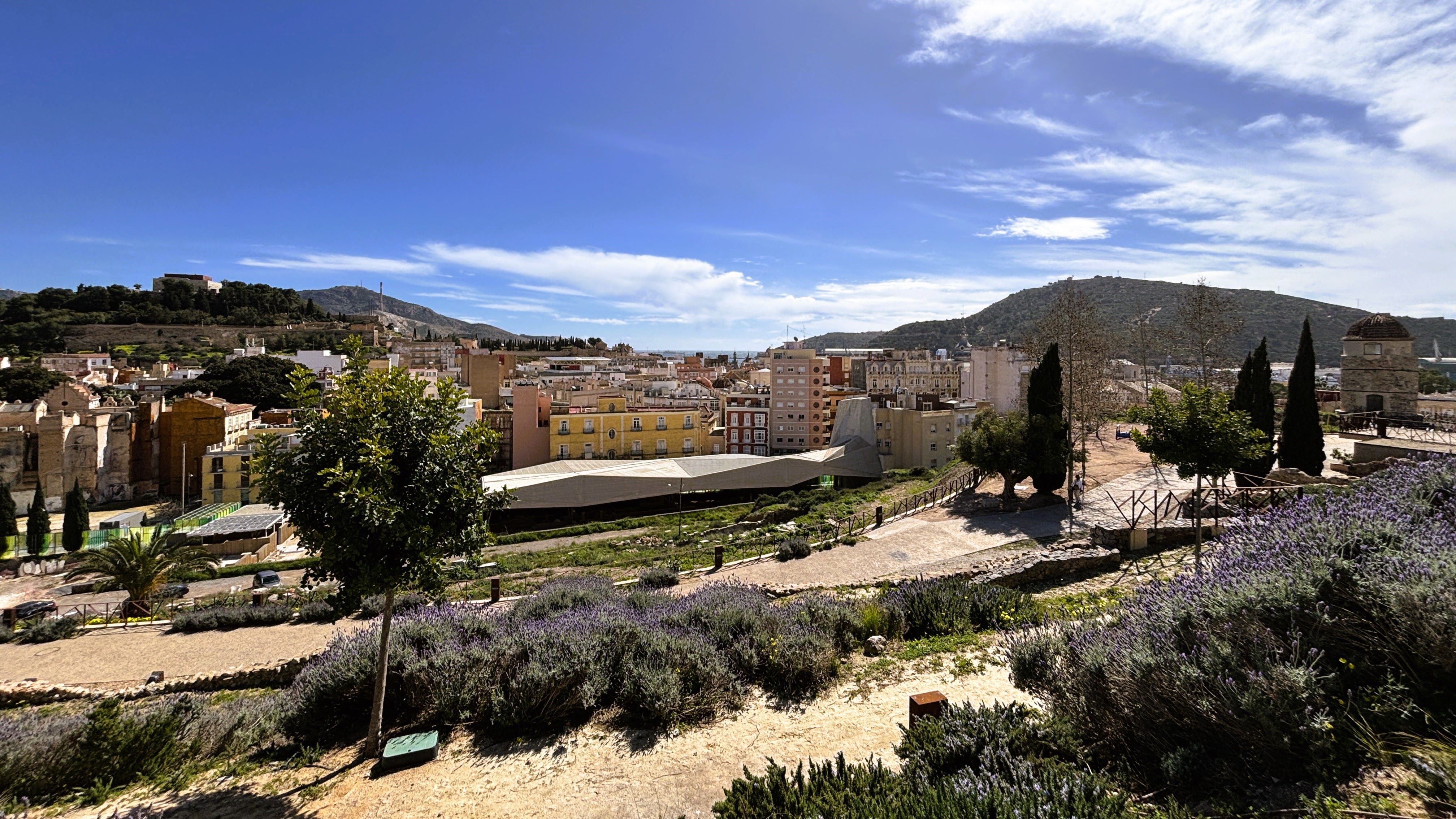 Following on, we realised we still had time and the sun was still shining, despite the wind having picked up considerably. Just how considerably would soon become clear as we ascended the hill toward the Castillo de la Conception. This castle was built by the moors in the medieval period and only the keep really remains to this day, the outlines and ground works for the towers are there, but its hard to imagine them really. The castle grounds are inhabited by peacocks and Muscovy Ducks which allowed us to get extremely close on our ascent to the castle which was a nice surprise, although neither are native to Spain as Ellen pointed out. The castle itself had a few interesting points to consider and the views from the top were incredible out across the harbour and inland toward the mountainous interior of Murcia. The other thing I noticed was, this was the first place I had actually seen anything about the Inquisition and what happened... although it was very fleeting in explaining much about this dark era of Spain's history.