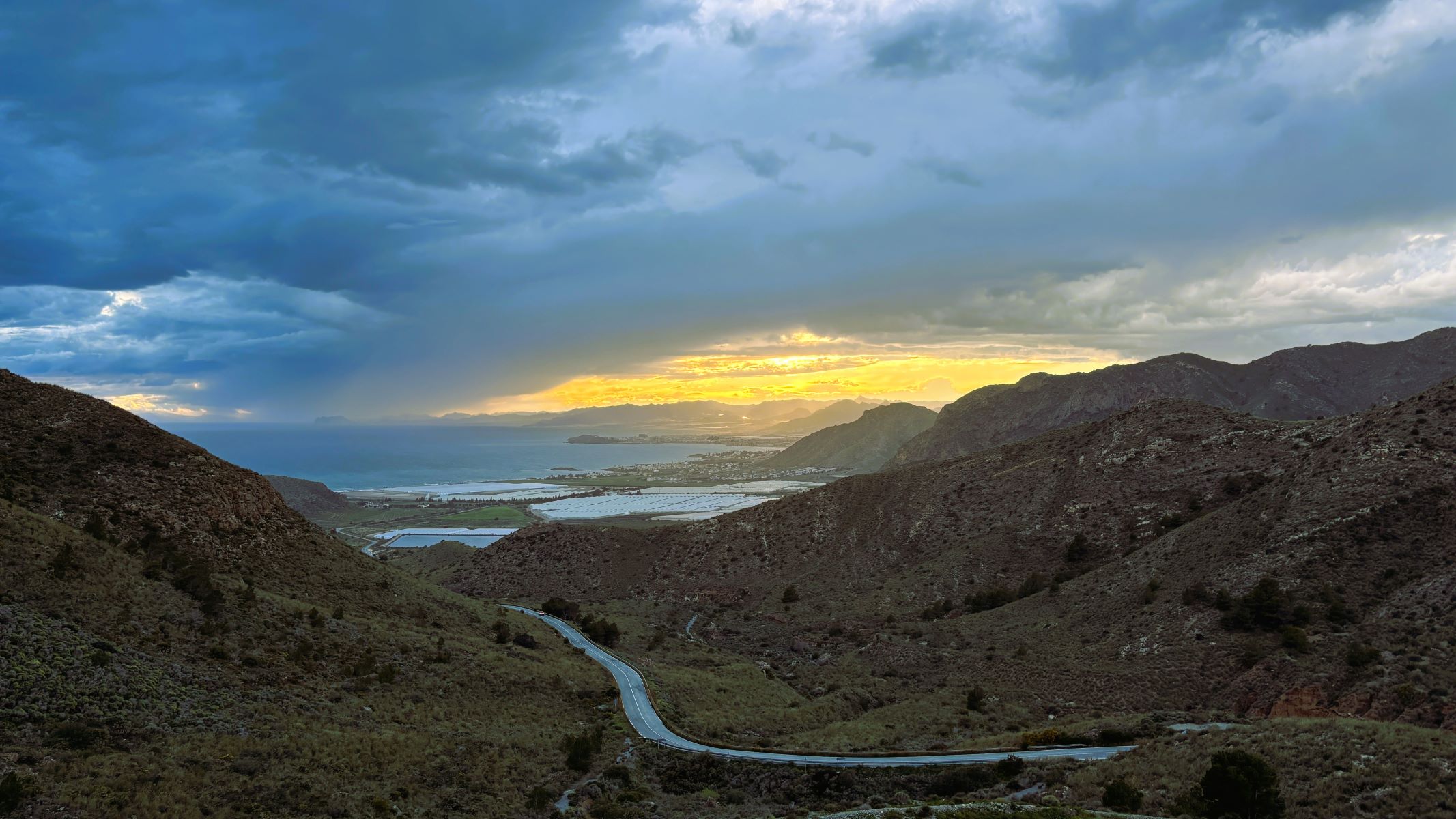Eventually we got water and could continue on our way. We pulled into the not so glamourous car park of FC Cartagena, where it's tolerated to stay if not doing camping stuff (sitting outside vehicles, stuff outside, awnings out etc) and as long as no events are on at the stadium. The weather was a bit touch and go and a storm was due overnight and into the morning next day. But Ellen had a meeting to do and that meant I could spend the afternoon doing the laundry a short walk into the city. Obviously I just sat and scrolled Instagram rather than doing anything productive (like maybe writing this blog!) but after an hour I was back at the van and Ellen was wrapping up as I packed away the overly fragrant laundry. The van now smells... floral, I think is the best description.