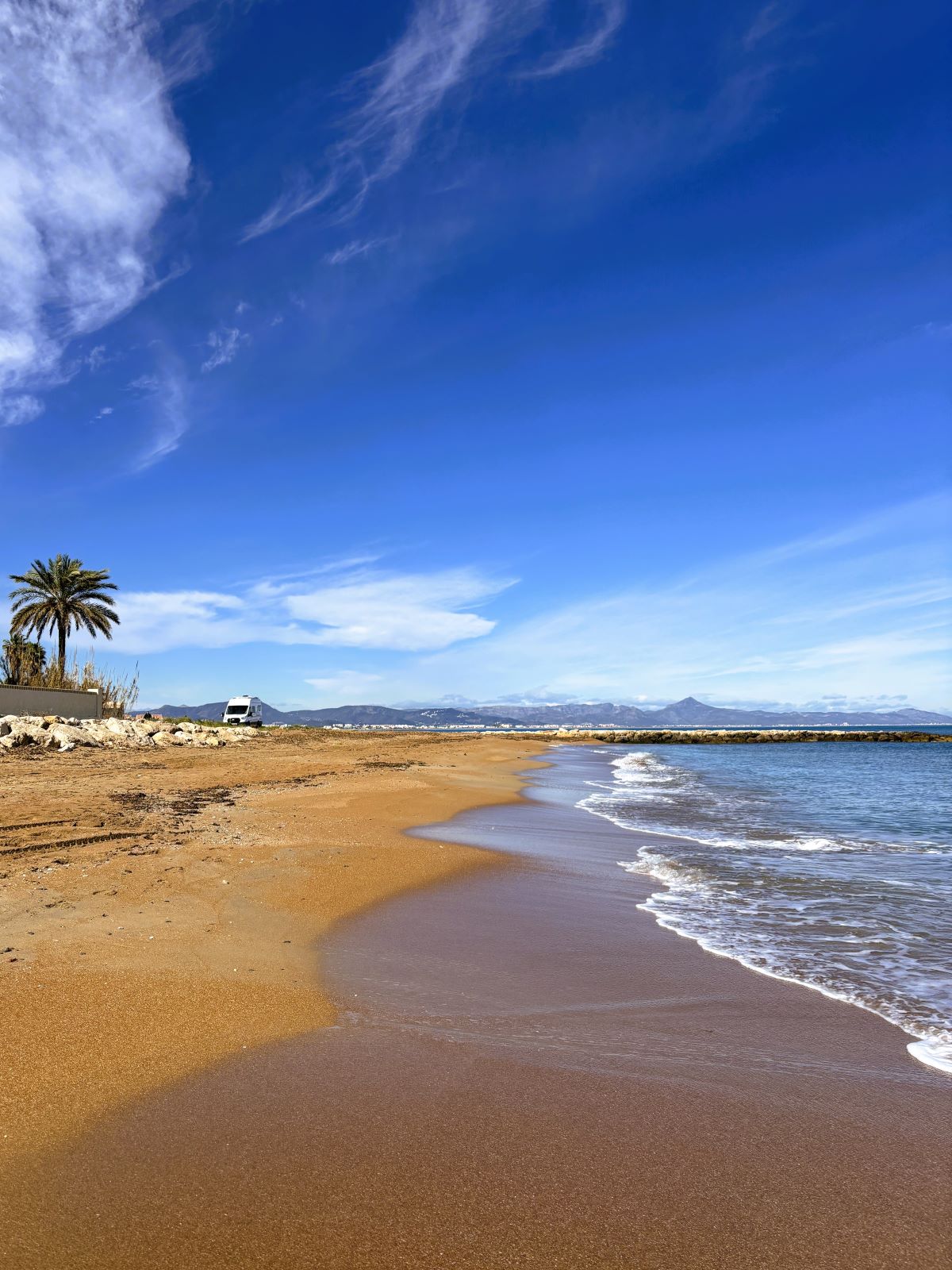 Obviously this is a bit unsettling but we've started to expect the unexpected in Spain after our experience in Valencia. However the French motorhome next to us found this too much and promptly moved on, despite having only been there 2 or 3 hours. It was probably for the best as it never really quietened down until midnight. The bin lorries arriving at 11pm was a particularly fun experience. We do wonder if this is all intentional. We're tolerated in the car park but the locals don't like it? We have (since) realised that even in March there is a bit of a problem along the coast with too many campers and motorhomes everywhere and we are of course contributing to that problem. Like everything, there's nuance to it, we try to leave little trace of our being somewhere and try to contribute to the local economy with buying things in the nearby towns etc. But there are those who don't care about the locals, the town or the environment. Only the day before had Ellen gone for a walk whilst I stayed and did some website updates and she had interrupted a French motorhomer who was emptying his chemical toilet, blue liquid and all, just out on the side of the road.